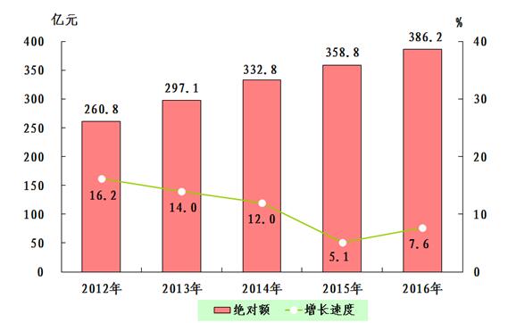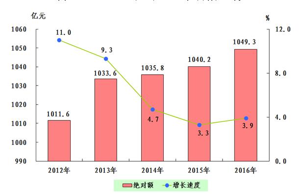 圖1:2012—2016年全市生產(chǎn)總值及增長速度