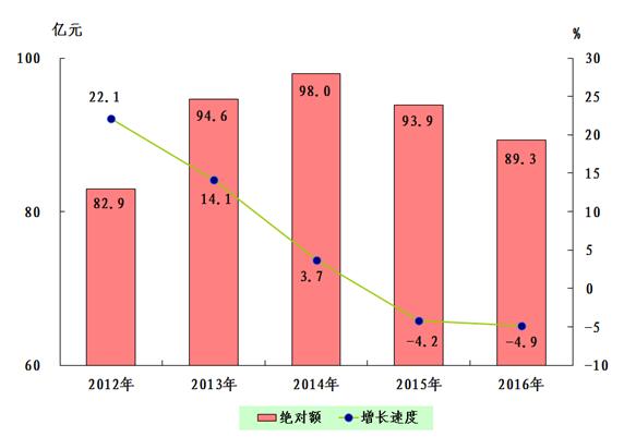 初步核算,全年全市生產(chǎn)總值1049.3億元,按可比價格計算,比上年增長3.9%。其中,第一產(chǎn)業(yè)增加值49.8億元,增長0.6%,占生產(chǎn)總值的比重為4.7%;第二產(chǎn)業(yè)增加值554.9億元,增長2.4%,占生產(chǎn)總值的比重為52.9%;第三產(chǎn)業(yè)增加值444.6億元,增長6.3%,占生產(chǎn)總值的比重為42.4%。第三產(chǎn)業(yè)中,金融保險業(yè)增加值68.7億元,增長7.5%;交通運輸、倉儲和郵政業(yè)增加值76.1億元,增長11.4%;批發(fā)和零售業(yè)增加值62.3億元,增長3.0%;住宿和餐飲業(yè)增加值30.7億元,增長7.8%;營利性服務(wù)業(yè)增加值45.7億元,增長11.7%。人均地區(qū)生產(chǎn)總值45271元,按2016年平均匯率計算為6815美元。