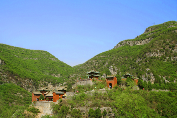 玨山勝境:玨山又名角山,其雙峰對峙,巍峨蒼翠,宛若—對碧玉鑲嵌在太行山上,故名玨山。玨山鐘靈毓秀,自然景觀迷人,人文內(nèi)涵豐厚。山上松柏懸崖,林壑深蔚,游人不絕如蟻,接踵摩肩。自宋代起,歷朝逐年在玨山雙峰間建起玄帝殿、真武宮、靈官頂及一、二、三天門等。玨山寺廟依山勢而筑,遠望凌空入云,殿角飛椽于綠樹花草中若隱若現(xiàn),宛若仙山瓊閣、海市蜃樓。二天門三百六十余級石階,陡然直上,兩邊峭壁險峻,峽谷幽深,使游人于登山險趣中感受大自然的美妙,體驗“無限風(fēng)光在險峰”的意蘊。及至山頂,迎面是氣勢雄偉的南天門,依次而上二天門、三天門、過月亭、而后至雙峰極頂?shù)恼嫖鋵m和靈官頂! ∮螝v于玨山勝境之中,那無處不在的石刻碑碣,仿佛在向人們展示著歷史的滄桑,唐代詩人杜牧、明代尚書王國光、明代文學(xué)家董緒、清代閣老陳廷敬等在此游歷后均留下了不朽的詩篇。