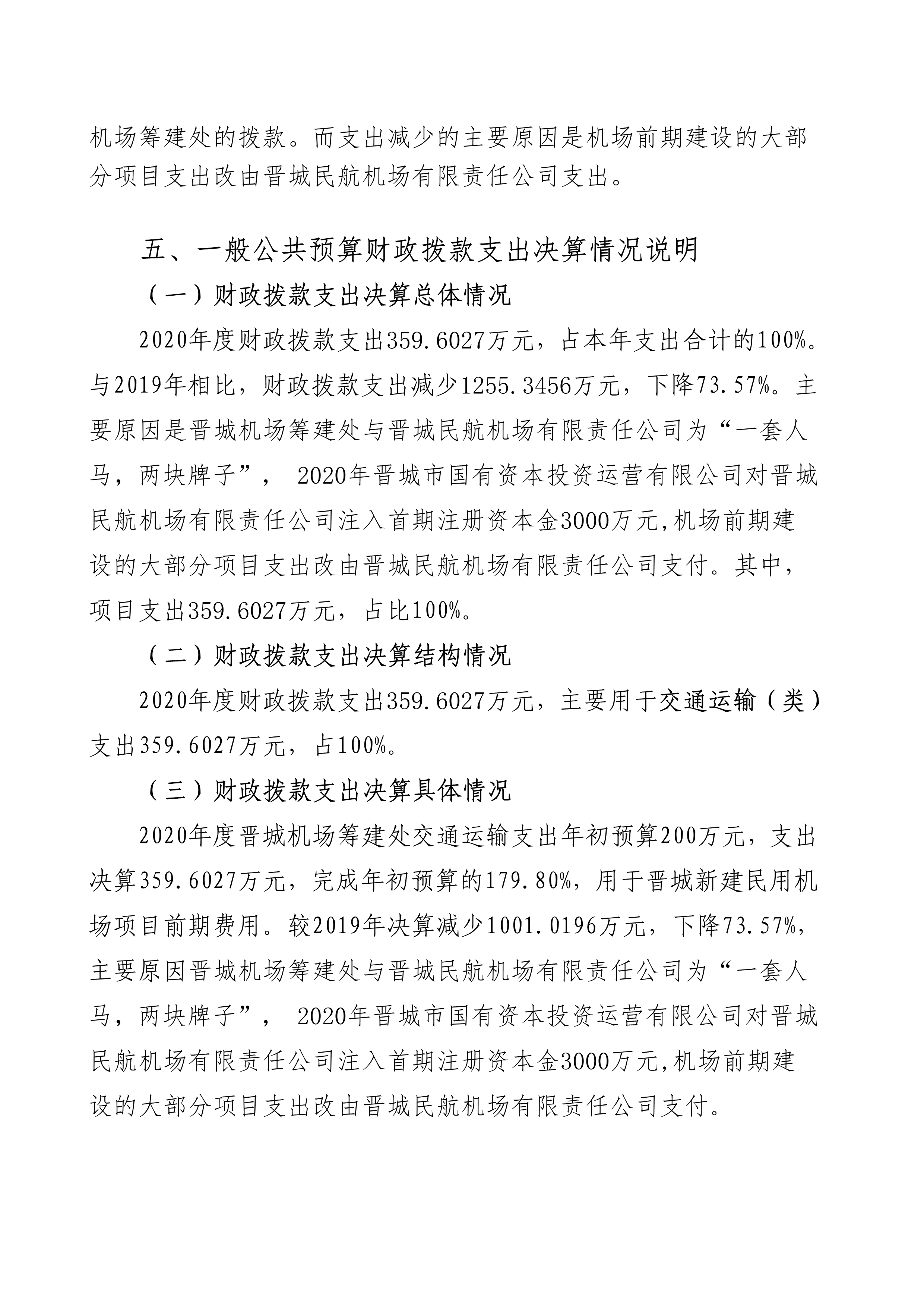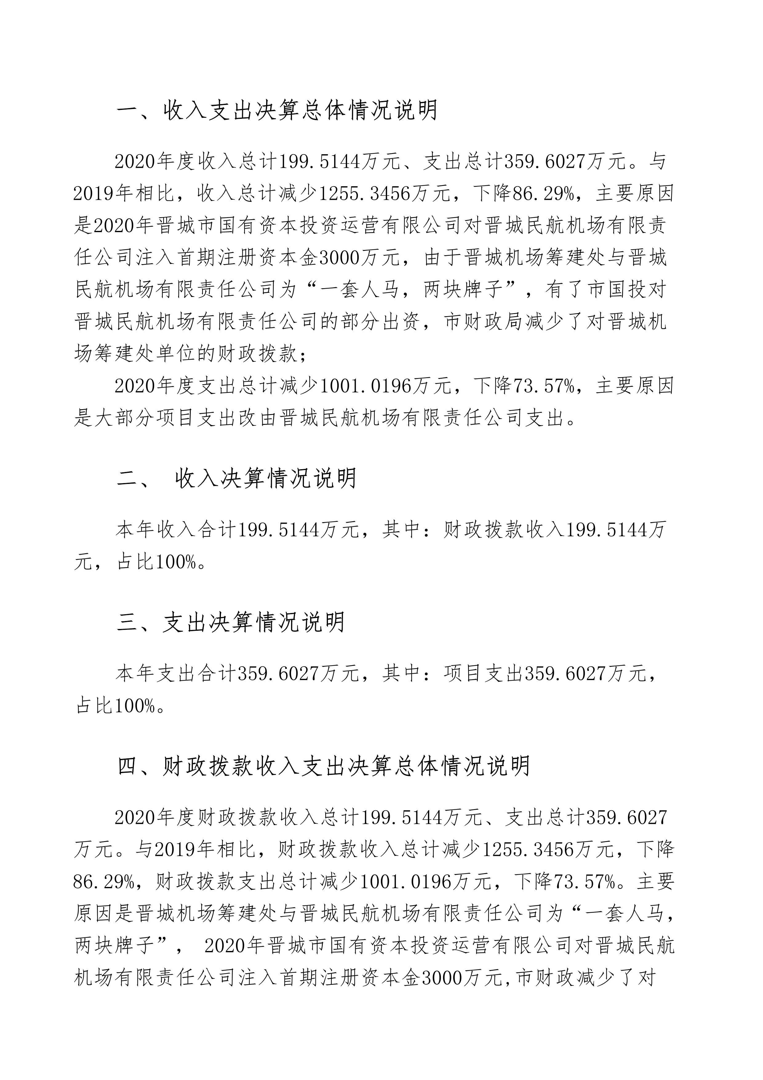 晉城機場籌建處2020年度決算公開