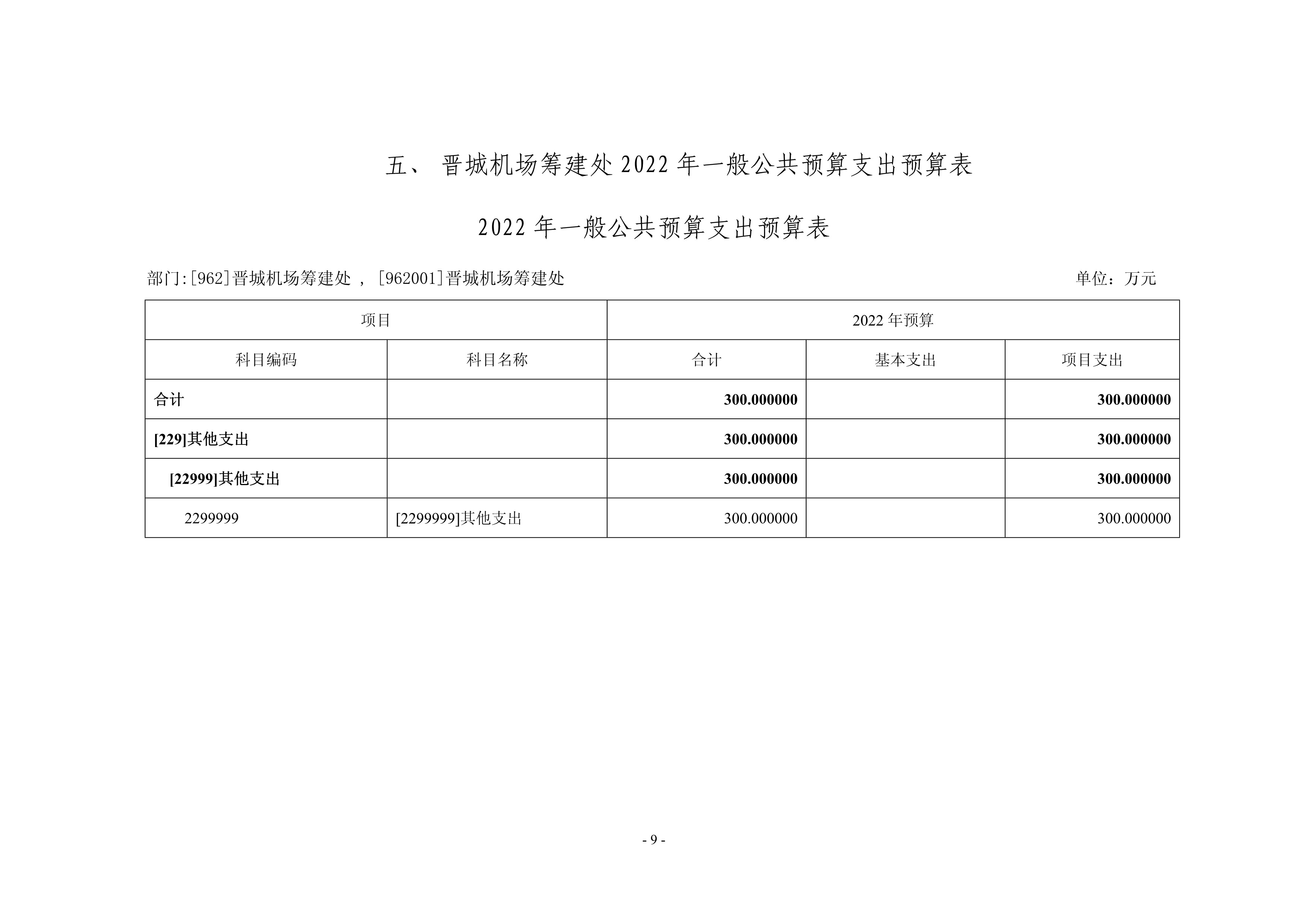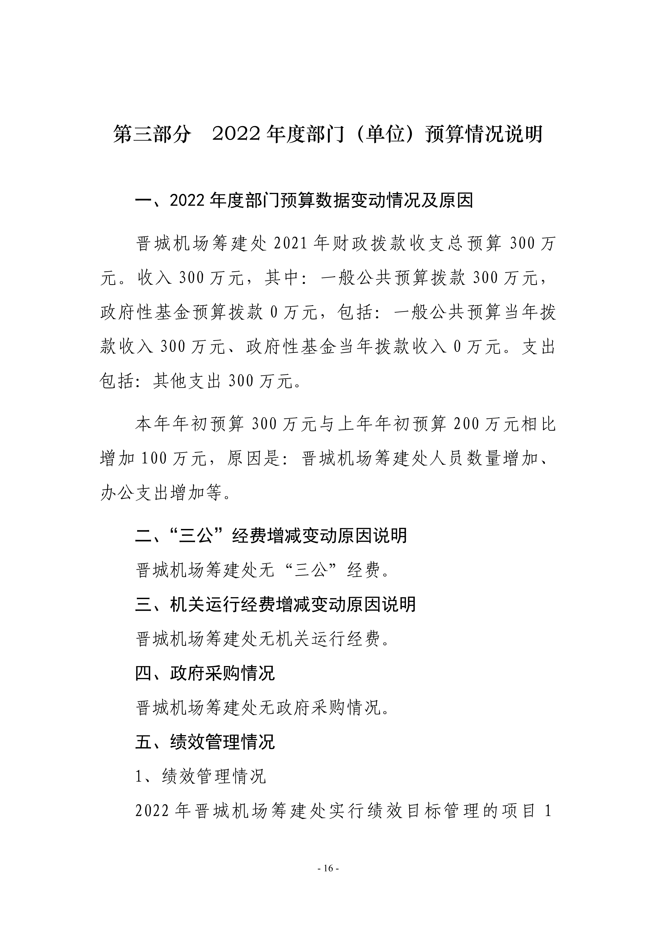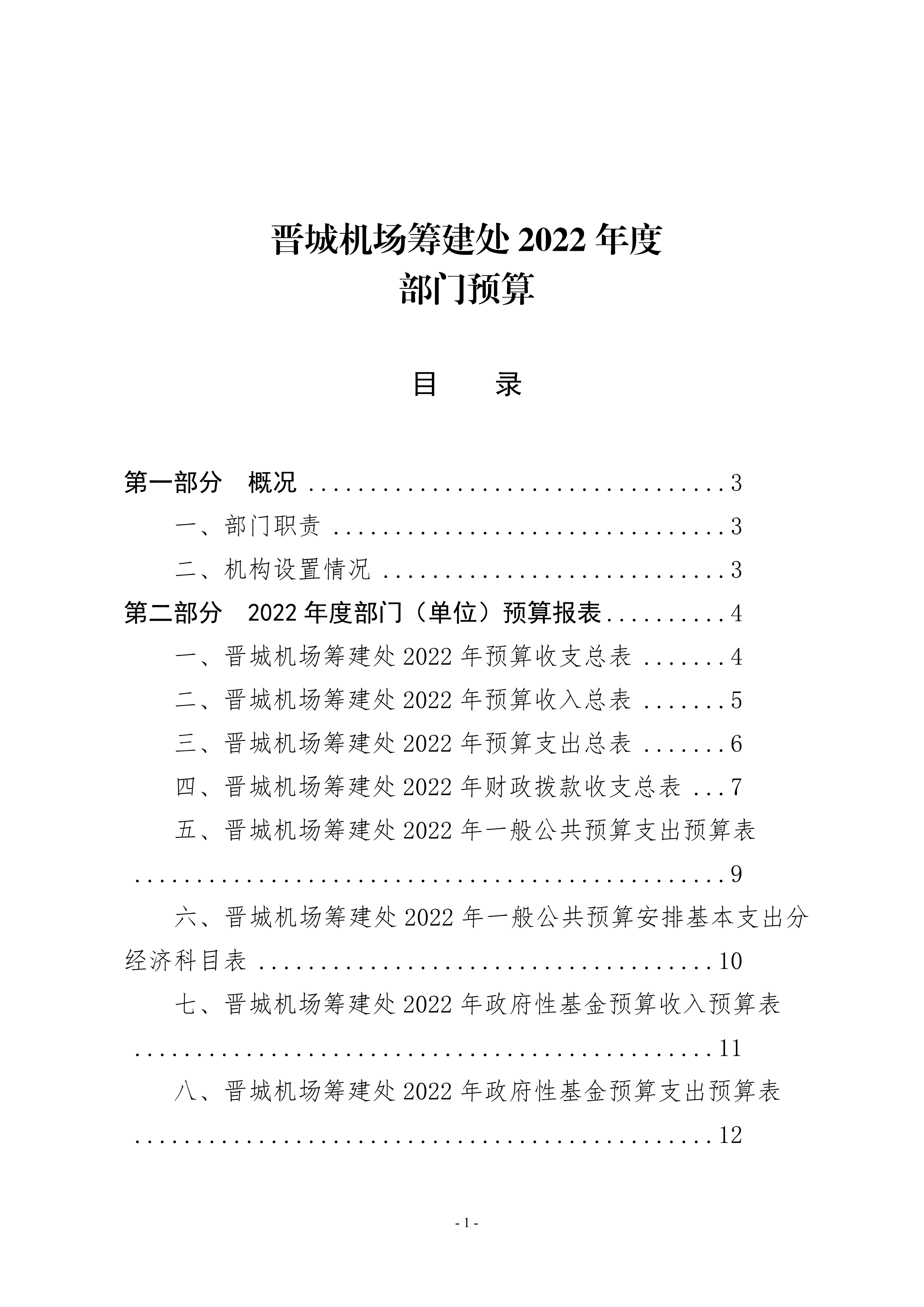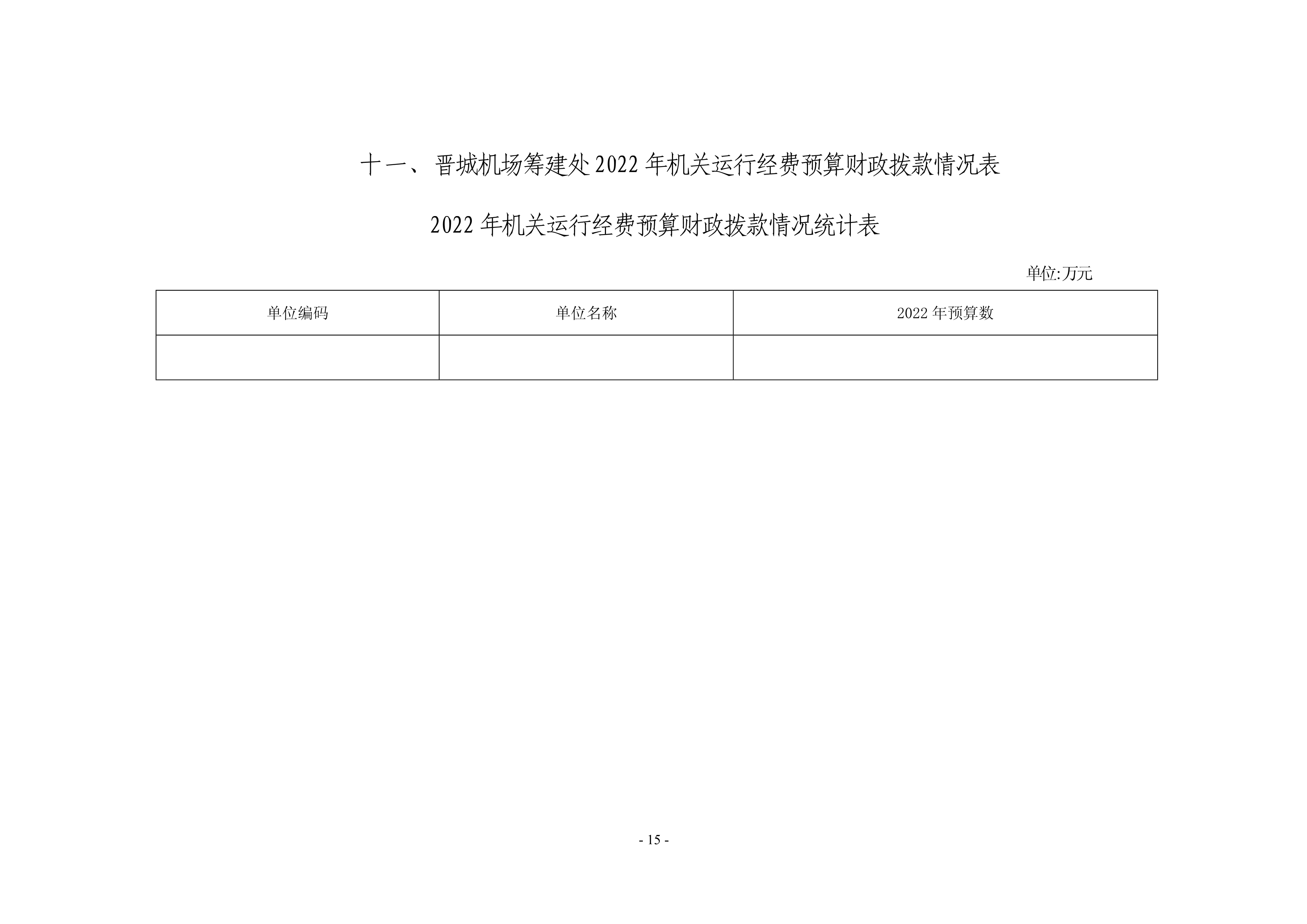 晉城機場籌建處2022年度預(yù)算公開