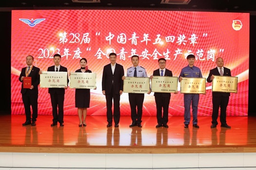 宋志勇為第28屆“中國青年五四獎(jiǎng)?wù)隆焙?023年度“全國青年安全生產(chǎn)示范崗”的獲獎(jiǎng)代表頒獎(jiǎng)