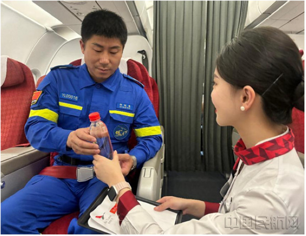 “在危難時(shí)刻你們無畏逆行,用專業(yè)與擔(dān)當(dāng)守護(hù)生命,用汗水與信念點(diǎn)亮希望”當(dāng)航班進(jìn)入平飛階段,乘務(wù)組通過機(jī)上廣播向藍(lán)天救援隊(duì)員們表達(dá)崇高敬意,廣播未畢,客艙內(nèi)就已響起熱烈掌聲,旅客們紛紛為這群“逆行英雄”點(diǎn)贊鼓掌。