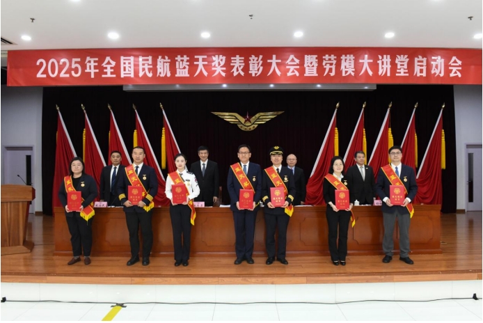 經(jīng)黨和國家功勛榮譽(yù)表彰工作委員會(huì)辦公室同意,2025年“五一”前夕,民航局開展藍(lán)天獎(jiǎng)狀、藍(lán)天獎(jiǎng)?wù)略u(píng)選表彰。會(huì)議宣讀了民航局表彰決定并進(jìn)行頒獎(jiǎng),授予國航西南分公司等27個(gè)單位、國航飛行總隊(duì)第四飛行大隊(duì)一中隊(duì)晨風(fēng)班組等48個(gè)班組藍(lán)天獎(jiǎng)狀榮譽(yù)稱號(hào),張鳳麟等75名同志藍(lán)天獎(jiǎng)?wù)聵s譽(yù)稱號(hào)。藍(lán)天獎(jiǎng)?wù)芦@得者、國航飛行總隊(duì)三大隊(duì)一中隊(duì)中隊(duì)長王雨寒宣讀了倡議書。
