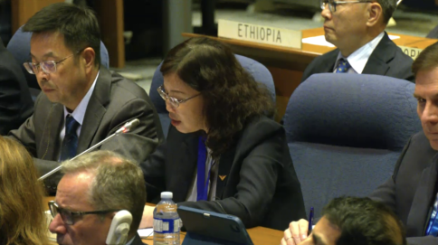 中國民用航空局副局長梁楠在大會上發(fā)言(國際民航組織官網直播畫面)
